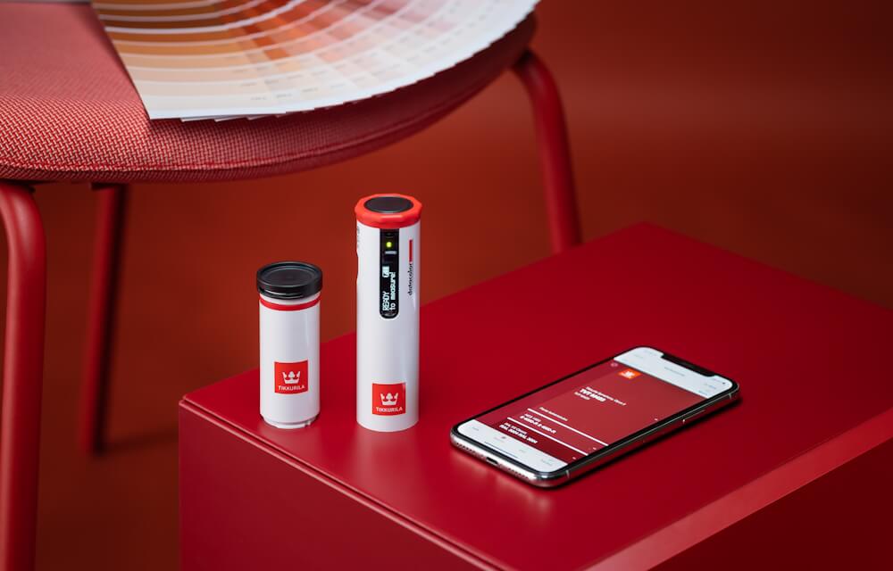 Värimittarin avulla voit mitata minkä tahansa värin tarkasti ja löytää lähimmän maalivastineen värikarttakokoelmasta, joka on tallennettu laitteeseen tai mobiilisovellukseen. Näin maalin väri saadaan valittua heti oikein.