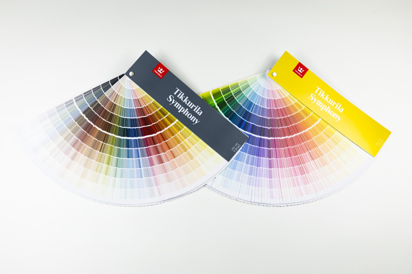Symphony-väriviuhkat sisältävät yhteensä 2436 peittävää väriä sisämaalaukseen. Tikkurilan Symphony on markkinoiden laajin ja nykyaikaisin värijärjestelmä. Käyttäessäsi Symphony-värijärjestelmän värejä voit luottaa siihen, että maalattu kohde on tarkalleen värisuunnitelmasi mukainen.