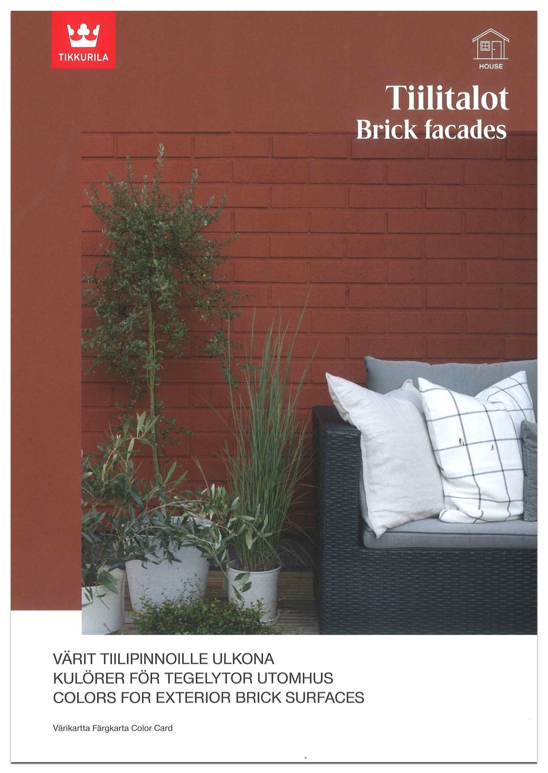 Tiilitalot-värikartta sisältää 20 ajatonta väriä tiilijulkisivujen maalaukseen Kivitex Brick House Paint -tiilitalomaalilla. Harmonisilla väreillä voidaan syventää tai vaihtaa tiilen omaa väriä.